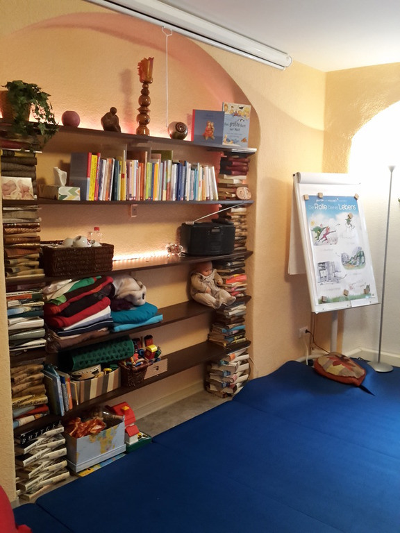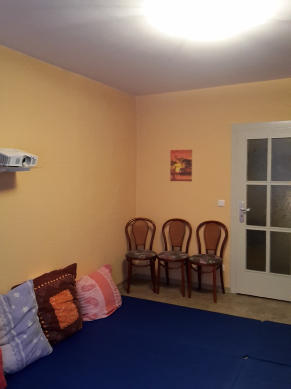 Der zu vermietende Kursraum ist sehr behaglich eingerichtet mit Matten und vielen Kissen und bietet durch Ausstattung mit Beamer, Leinwand und Flipchart auch die Möglichkeit für Bild-/Videopräsentationen.